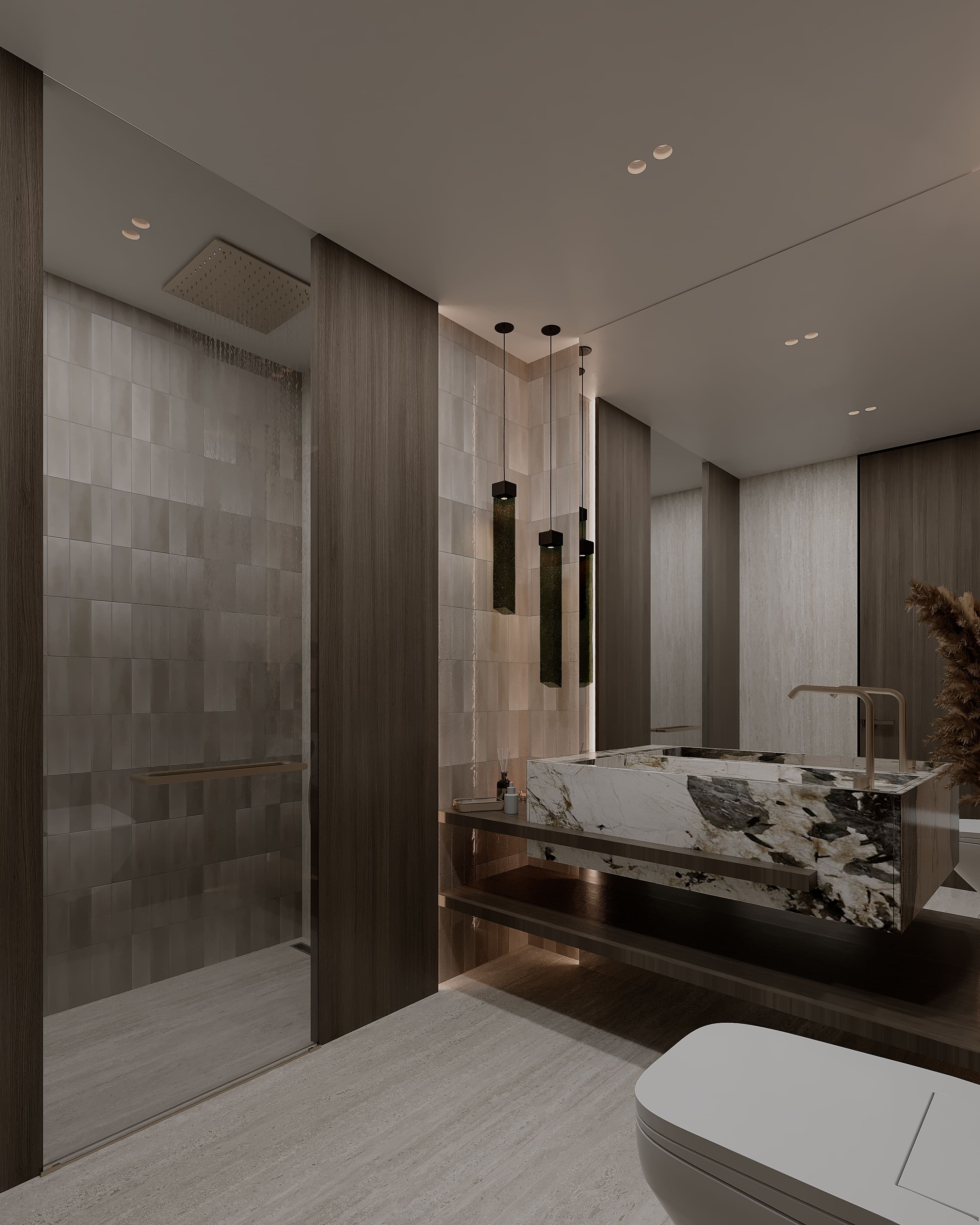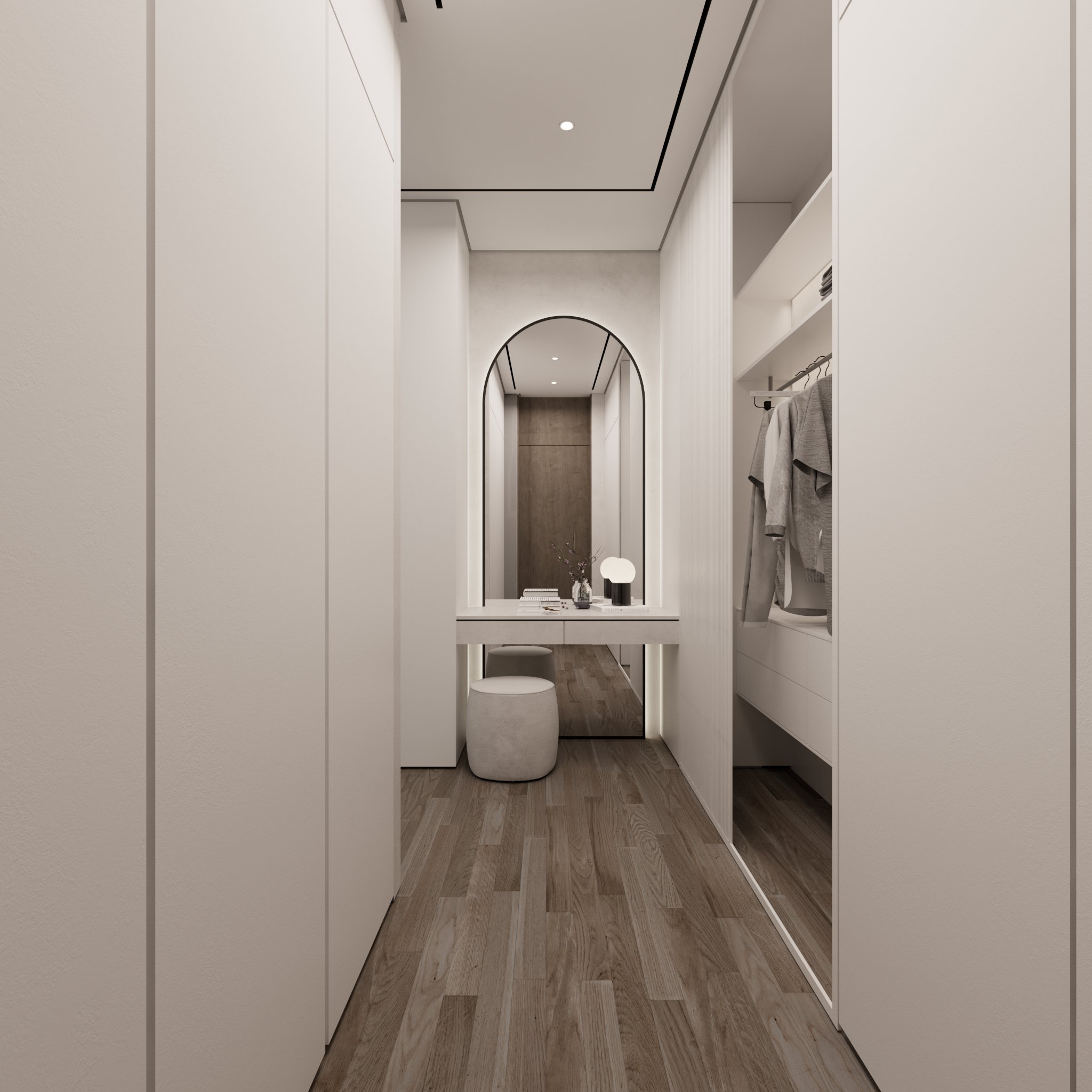 Located in Palm Jumeirah, Dubai, this luxury 2 BHK apartment features modern interior design, soft neutral tones, and functional spaces for comfortable living.